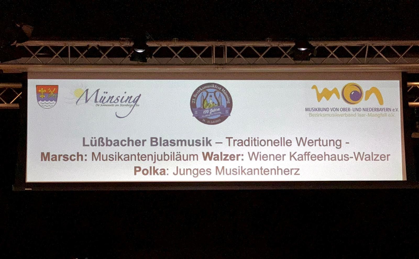 Eine weiteres Highlight der letzten Jahre war die Teilnahme an den Wertungsspielen des Musikbunds von Ober- und Niederbayern im Jahr 2024. Im vollbesetzten, neuen Pallaufsaal in Münsing durften wir in der traditionellen Wertung 3 Stücke einer Fachjury vortragen und wurden in der Stufe B mit "sehr gutem Erfolg" bewertet.
